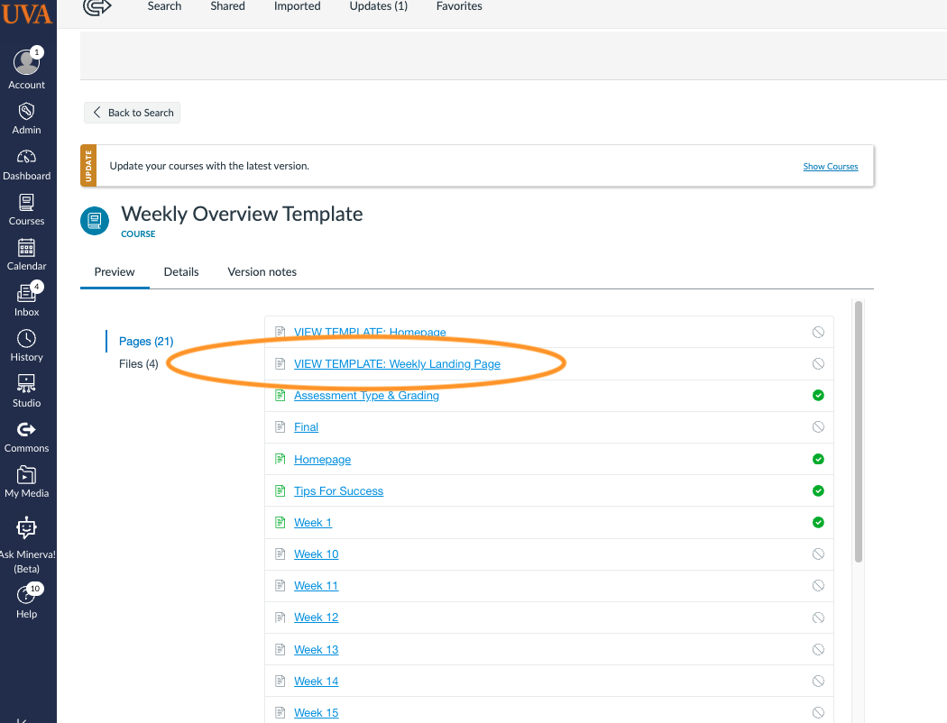 Navigate to the course that you just imported the template from Commons into.
