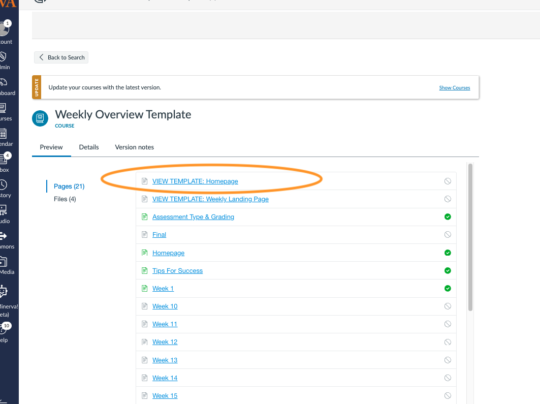Click "View Template: Home Page" to get a feel of the course and see the main page.